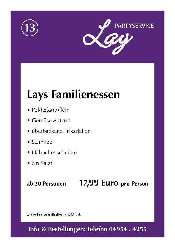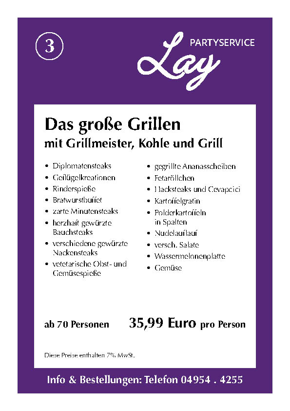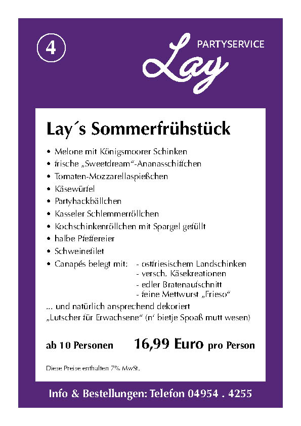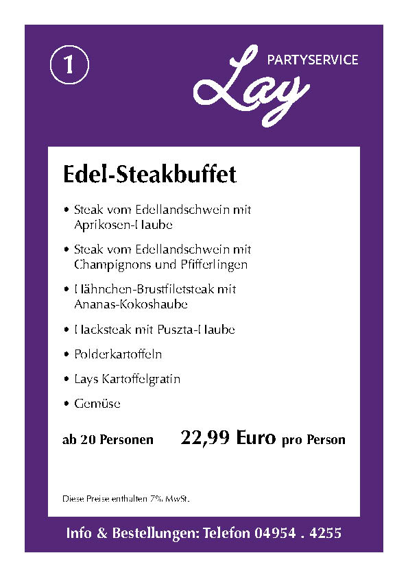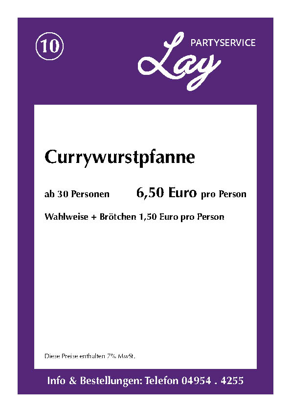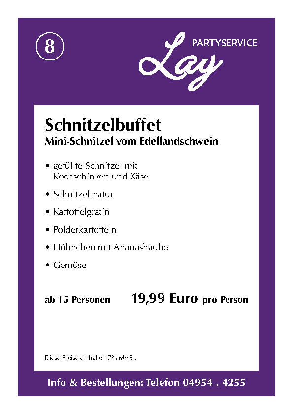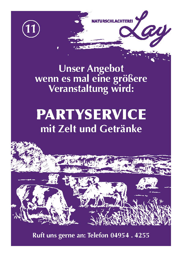 Hier finden Sie einige Beispiele und Anregungen für Ihre nächste Veranstaltung. Eines haben alle Speisen gemeinsam: Sie sind natürlich aus eigener Herstellung und mit frischen Zutaten zubereitet. Nehmen Sie einfach Kontakt mit uns auf. Wenn Sie einen Beratungstermin wünschen, können Sie uns jederzeit telefonisch kontaktieren. Wir berechnen zusätzliche Fahrtkosten von 20 Euro. Bitte beachten Sie auch unsere AGB: (Stand: 11/2021)